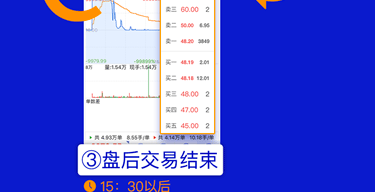 每个交易日的 15:05 至 15:30 为盘后固定价格交易时间,当日 15:00 仍处于停牌状态的股票不进行盘后固定价格交易。